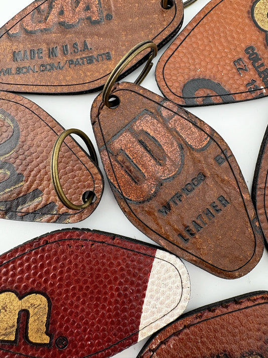 Each of our patches comes from genuine leather footballs. We source these footballs from all over the nation. Some have seen plenty of play in backyard pick-up games, others under Friday night lights, and even some on college fields.
