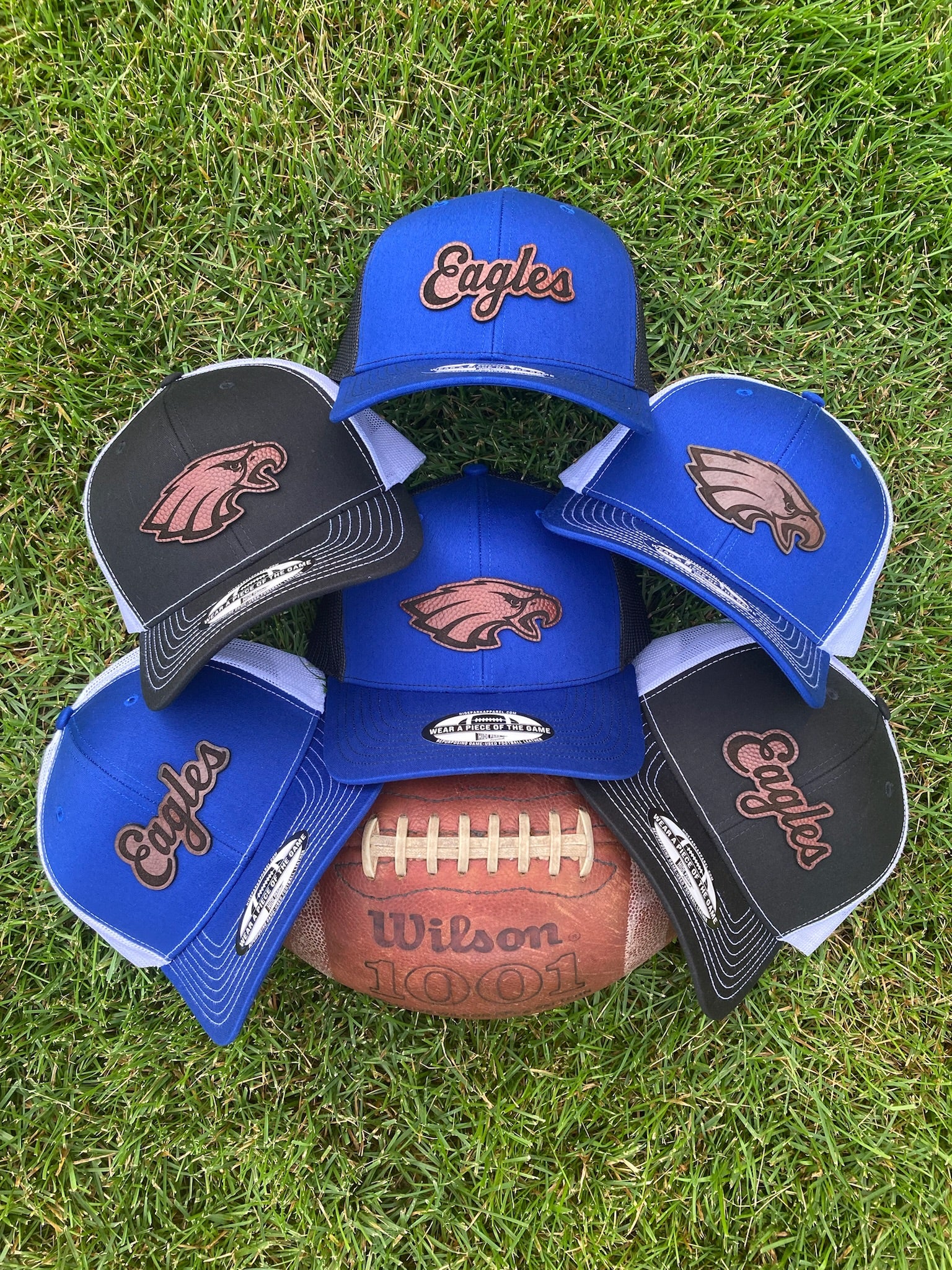 Introducing our exclusive product collection in collaboration with O'Neill Public Schools! Discover a remarkable assortment of unique hats, meticulously crafted from repurposed, authentic game-used footballs. By selecting our products, you're also championing the O'Neill Eagles as a portion of the sales will go back to the Eagles program.