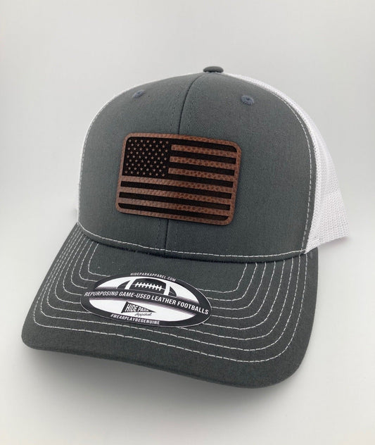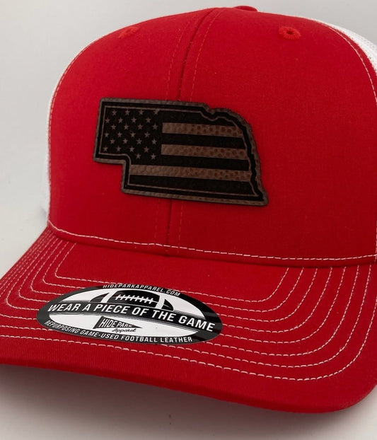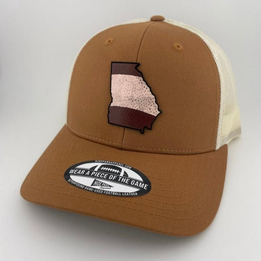 The Iowa Stripe Trucker Hat | Game-used Football Leather
